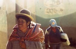 Tra una meta e l'altra, la puna, un enorme tavolato erboso, interrotto solo da piccoli rilievi dalla cui sommità si coglie maggiormente l'enorme spazio, apparentemente disabitato. La pista corre dritta, con leggere curve, in lontananza una nuvola di polvere anticipa l'arrivo di un veicolo. Lungo il percorso gli incontri sono rari: un pastore con alcuni lama, una donna che spinge una bicicletta su per la collina, case remote, costruzioni semi diroccate utili però per ripararsi dal vento che, privo di barriere, scorrazza in lungo e in largo. Sperduti villaggi con chiesa spagnoleggiante, poche case, un bazar, apparizioni furtive di qualche donna con l'immancabile bambino portato in spalla, un cane, sole, vento e un favoloso cielo azzurro.