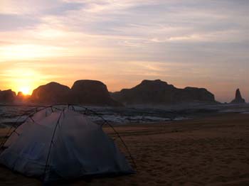 2° notte in tenda. Anche questa volta il posto è magnifico, qui però non siamo soli, nell'oscurità vediamo brillare in lontananza i fuochi di altri campi.