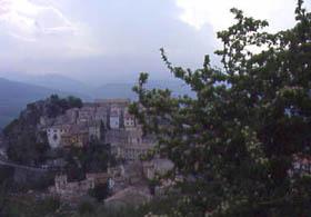 mitiga l'asprezza della nuda cima. Sull'altro cocuzzolo la Rocca.