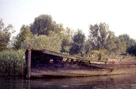 abbandonato lungo le rive e ormai semi sommerso, testimonia l'intenso